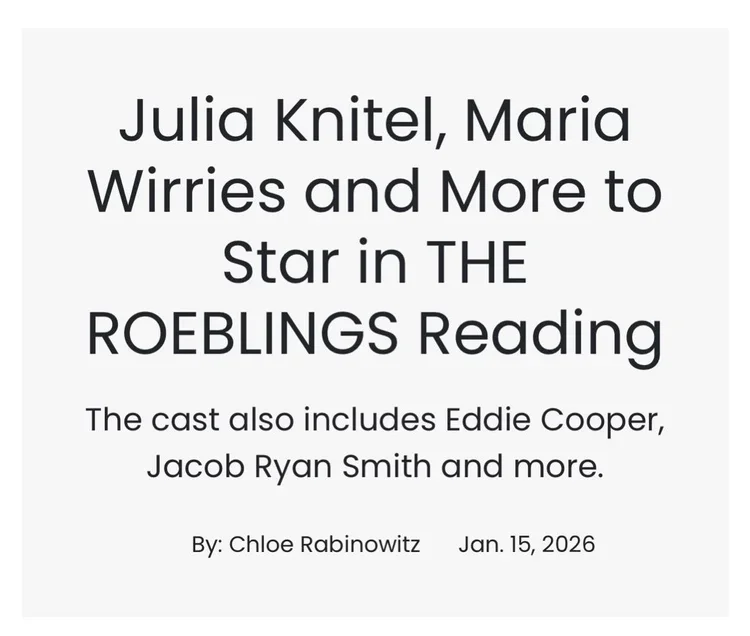 DQT would like to send a loud and hearty "break a leg" to the creative team of THE ROEBLINGS (music and lyrics by Doug Silver; book by Michael Mejias and Andrew Frank) on their upcoming industry reading. We are proud to have developed this new musical through DQT Presents..., one of our four new play development programs. Interested members of the industry should contact info@theroeblings.com for more information.